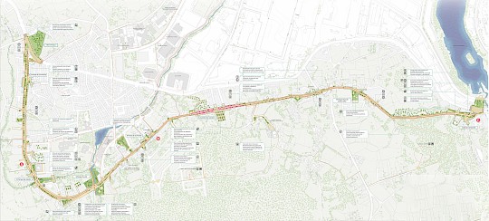 La propuesta de actuación se articula en base a tres escalas de identidad: travesía, nodos y portales. Travesía: totalidad del ámbito que se define en base a un único plano de acción.